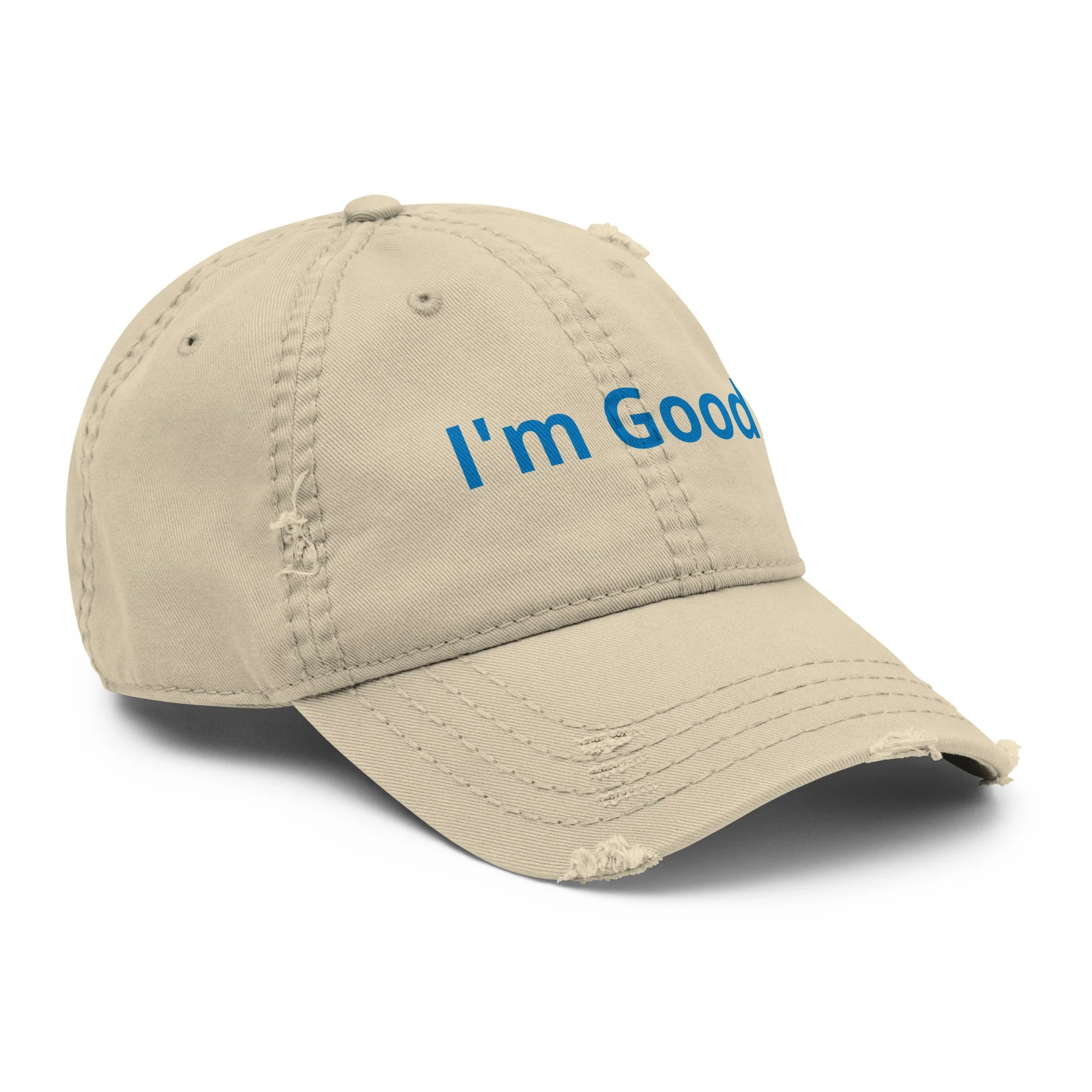 Expand your headwear collection with this fashionable dad hat. With a slightly distressed brim and crown fabric, it’ll add just the right amount of edge to your look. For a quick and easy outfit pair it with slacks, your favorite jeans, and a sports tee.